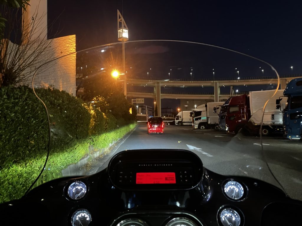 まずは湾岸線までの下道走行。HD純正ミドルショートスクリーンと違い、今回はスクリーン上端が目線ドンピシャでちょっと邪魔かな。これについては自分の胴長短足の体型を呪うしかありませんが。
